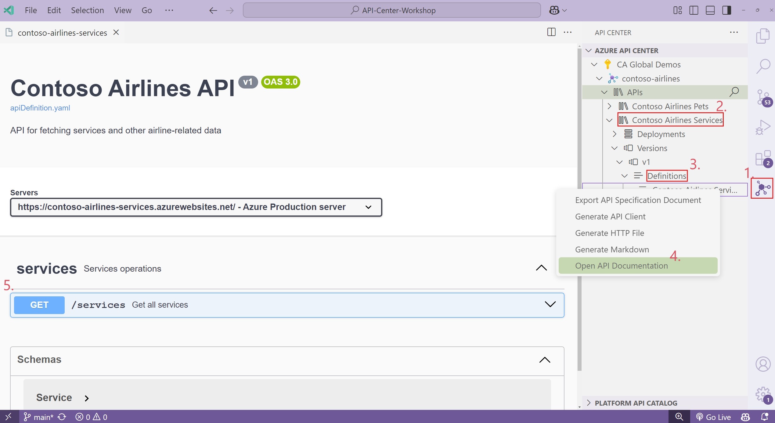 Once you have discovered an API, you can view its documentation directly in Visual Studio Code.